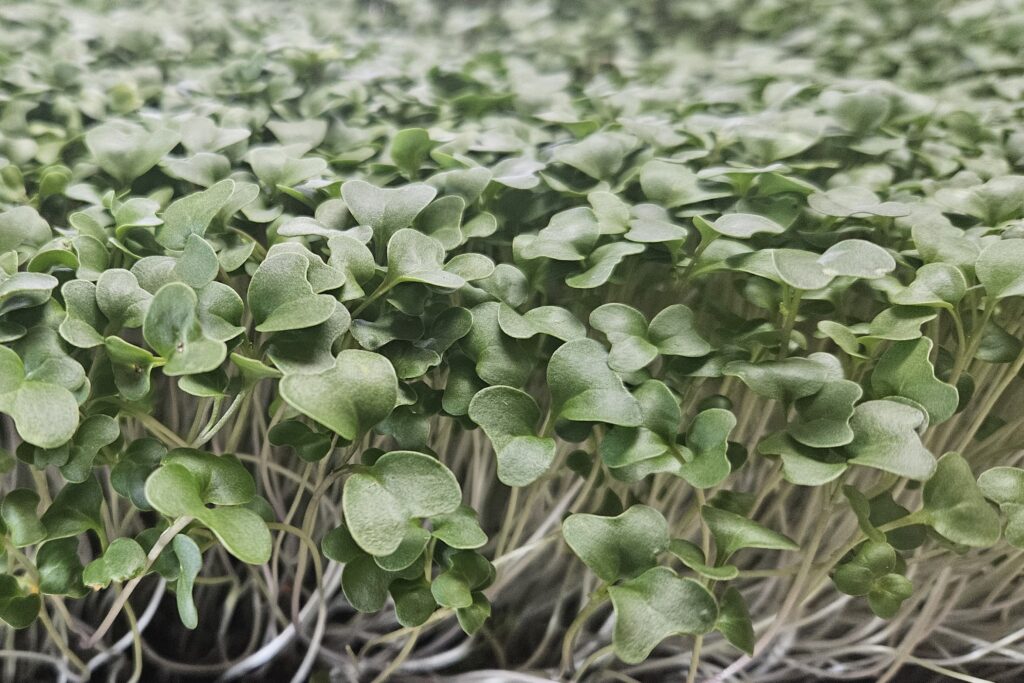 Microgreens are young plants that are harvested around the time the first true leaves begin to form. At this stage, the young plants are focusing on capturing and storing nutrients for their next growth stages making them a very nutrient-dense food.